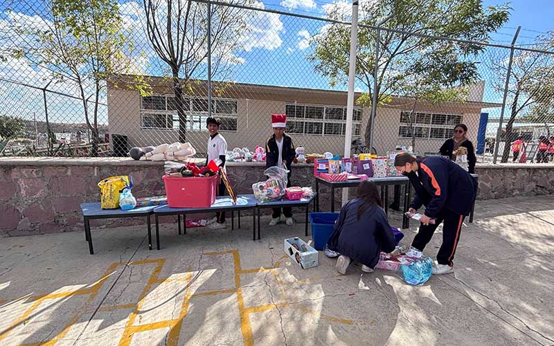 Asimismo, se invitó a los alumnos de primaria a compartir un juguete en buen estado que ya no utilizaran. Su respuesta fue entusiasta: participaron activamente llevando juguetes envueltos para regalar. Gracias a esta colaboración, se lograron recolectar más de 150 regalos, lo que permitió obsequiar un juguete a cada niño. Los juguetes restantes fueron donados a la comunidad de El Duraznillo.
